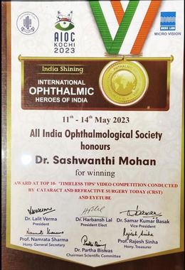 As a dedicated contributor to the ophthalmic field, I've authored peer-reviewed articles in international journals, I serve as an editorial board member in Ophthalmology Foundation and Tamilnadu Journal of Ophthalmic Science & Research, and volunteer as a speaker for both the Ophthalmology Foundation and Cybersight International by Orbis. I'm also a Fellow of the International Council of Ophthalmology (FICO) and a Member of the Royal College of Surgeons, Edinburgh (MRCS).